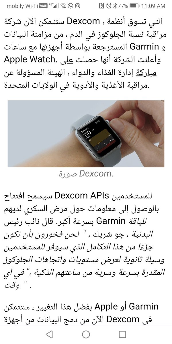 قريبا سيتمكن حساس الديكسكوم من الارتباط مباشرة مع ساعة أبل وجارمن للحصول على قراءات السكر