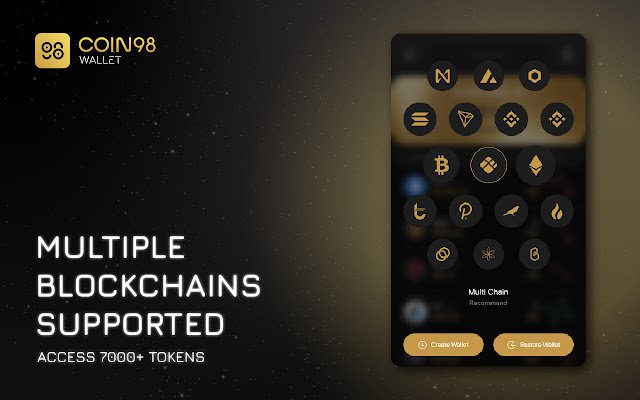 تدعم Coin98 Wallet بشكل كامل ال Blockchain المشهورة و تتيح إنشاء محافظ أو استيرادها وإدارة جميع أصولك الرقمية في مكان واحد ، و مبادلة أكثر من 70 Token دون مغادرة التطبيق ، وتقدم تجربة DApp إلى المستوى التالي باستخدام الربط بين ال DApps