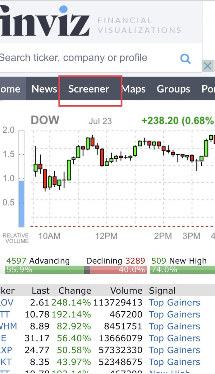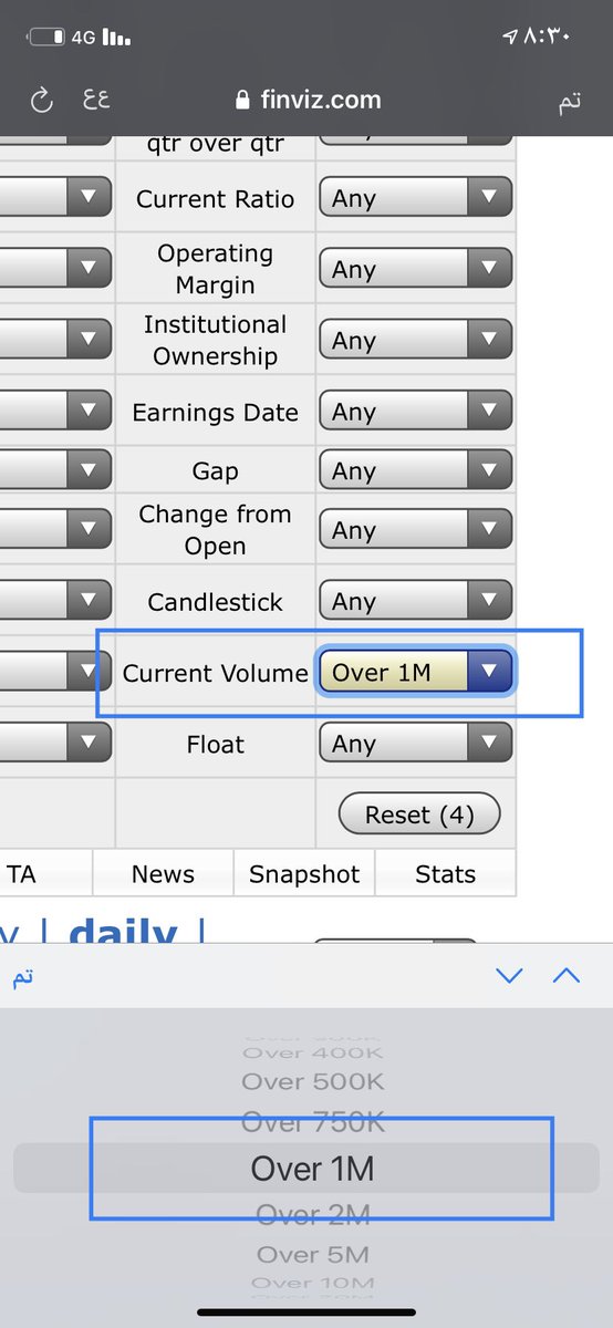 فلتر للبحث عن الشركات حسب (Unusual Volume ) او بمعنى اخر (حصل لها)حجم تداول غير عادي