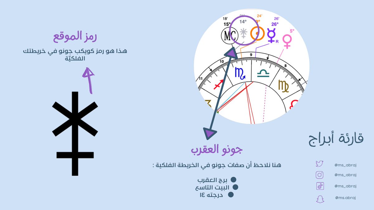 ١- كويكب جونو يمثّل الزواج ومدى الإلتزام بأي علاقة عاطفية