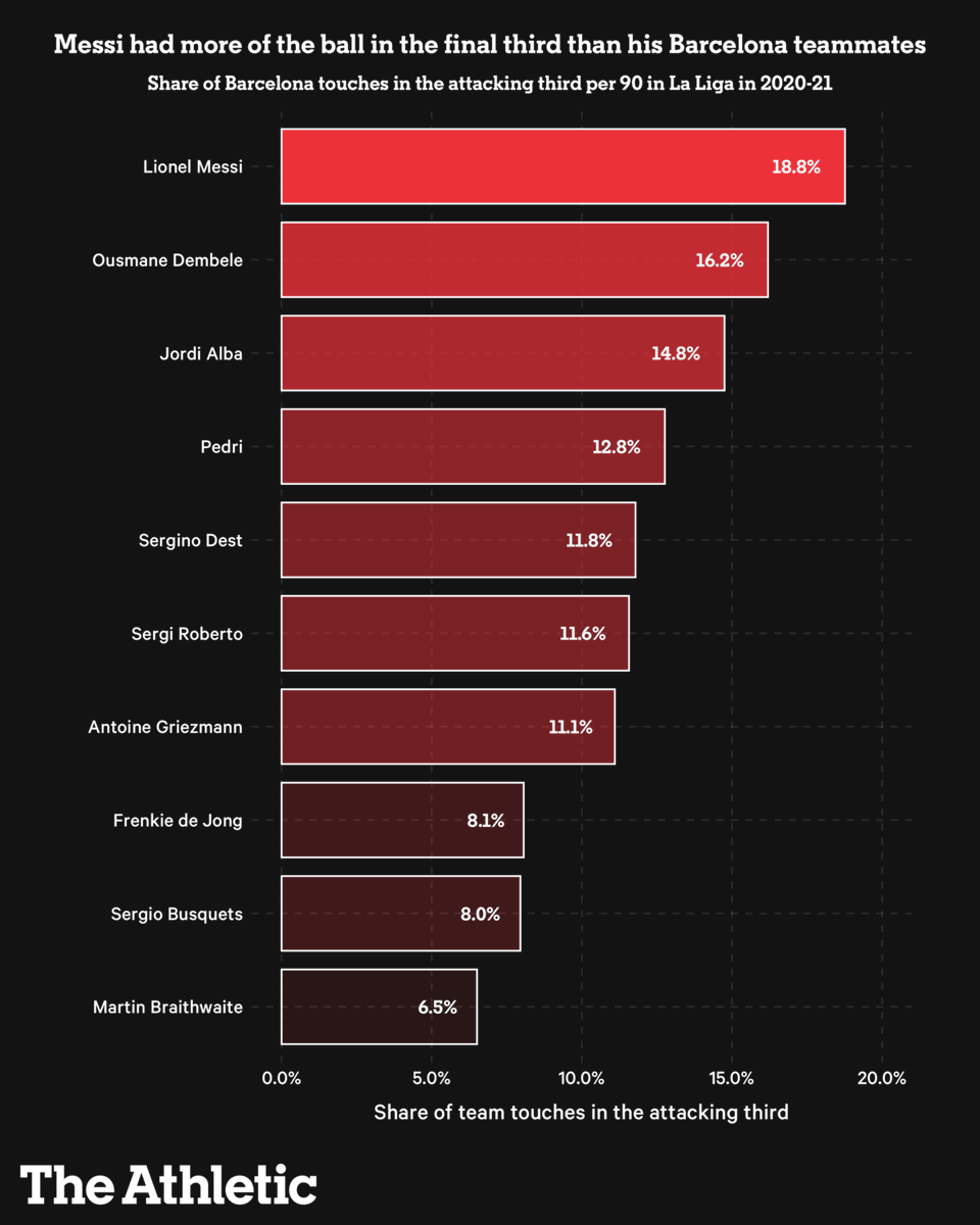 على الرغم من أن البعض يشير إلى أن قوى ميسي كانت تتضاءل في سن 34 ، فإن المستوى الذي عمل به طوال مسيرته يعني أنه لا يزال بشكل مريح أفضل لاعب لبرشلونة الموسم الماضي ويمكن القول إنه لا يزال أفضل لاعب في العالم.