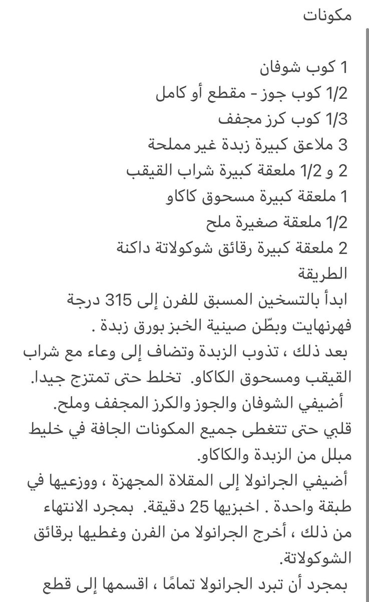 جرانولا بالكرز والشوكولاتة