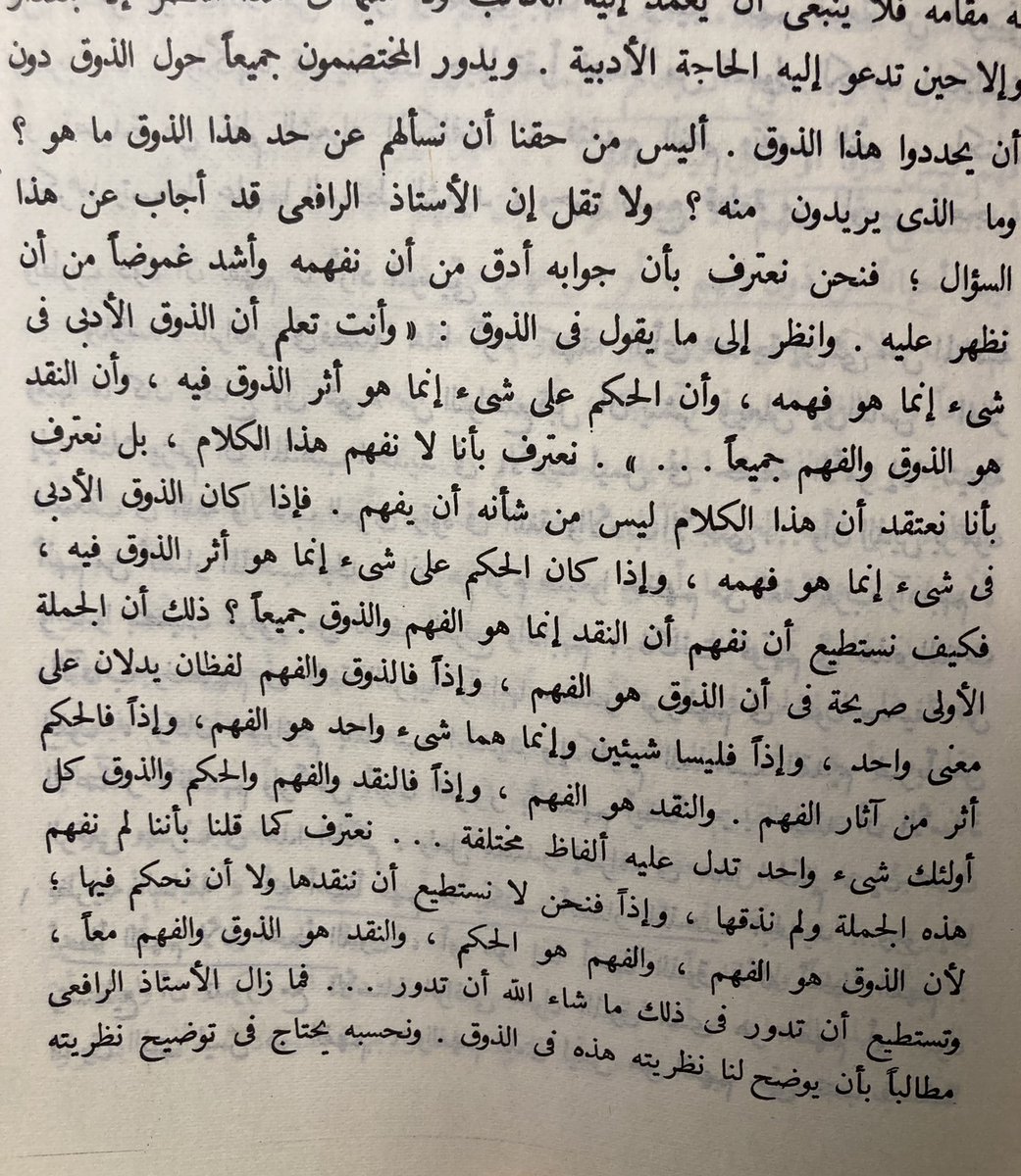 الضحك بقوة صار لأن طه حسين مسك على الرافعي سالفة (الذوق/الفهم) وقام يرددها كل شوي فتكسف عن (عيّار) عطيم 😂