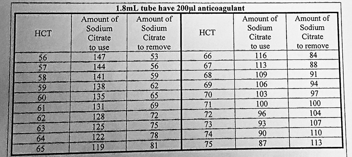 طيب كم ننقص من Na citrate anticoagulant?! 🙃