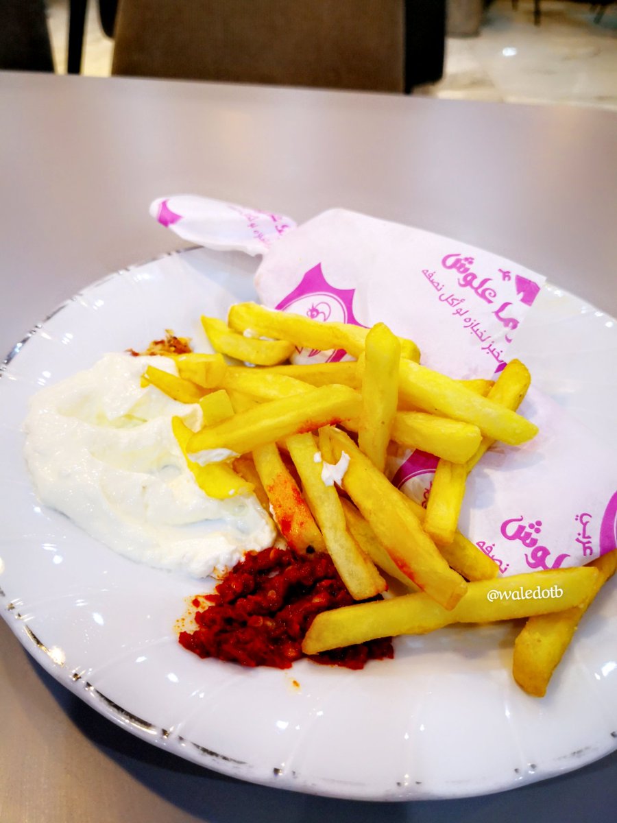 شاورما علوش في #جده اذا طلبت ساندوش شاورما صغير او عربي او غيره يعطيك معه مجانا صحن بطاطس وصوصات شطه شامي وثوم