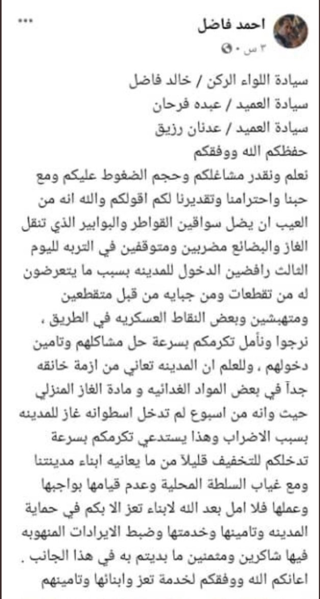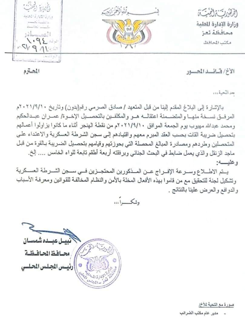 #وثيقة: رسالة لمحافظ تعز #نبيل_شمسان.