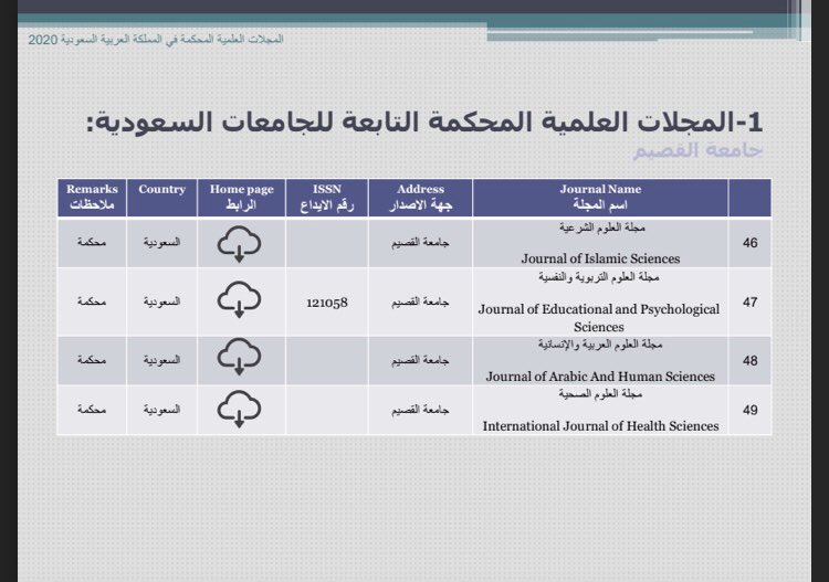 هذا الملف مهم جداً لكل الباحثين يضم كل أسماء المجلات المحكمة التابعة للجامعات السعودية ٢٠٢٠