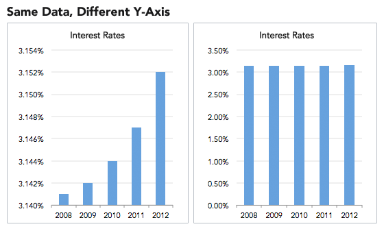 مثلا زاد ربح الشركة من 10,000 إلى 60,000 فيتم ذكر فقط أن الشركة نمت أرباحها 500%، مما يكسب الرقم الجاذبية الكاذبة.