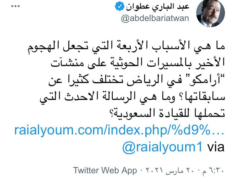 دائماً أقول المفترض ان هؤلاء المرتزقه يسجدون سجود شكر لآل سعودلأنهم يرتزقون بالتهجم عليهم وتلفيق الاكاذيب عنهم ومحاولة طمس نجاحاتهم التي لاولم ولن يحجبها شهادة فاقدي الشرف ولولا ال سعودوالملك سلمان والامير محمدبن سلمان لباعوا اعراضهم من الفقر