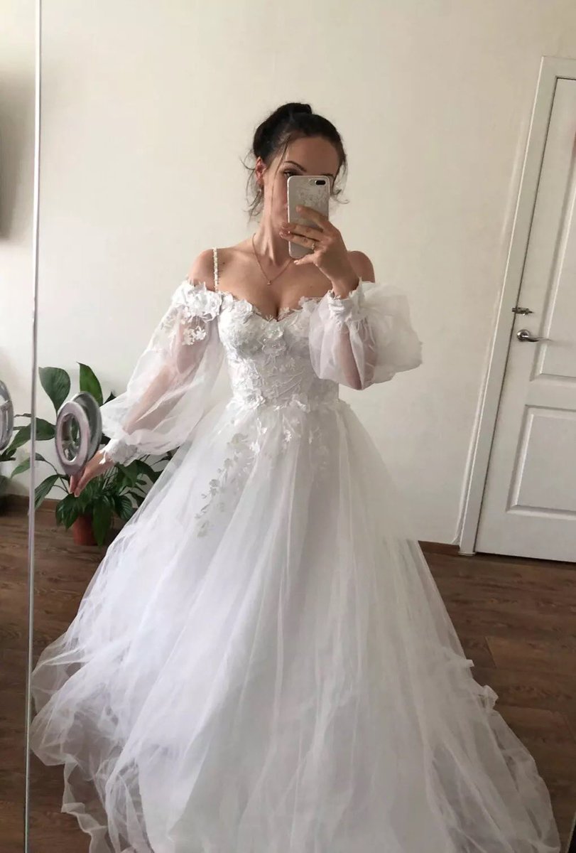 فستان عرس انيق وكلاس من موقع علي اكسبرس اول صوره للمودل وثاني صوره لفستان من تنفيذهم على عميله
