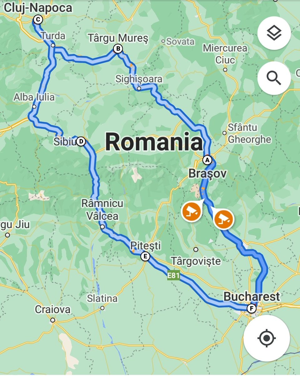 كان تنقلنا في معظم أيام الرحلة عبر السيارة المستأجرة وكانت افضل خيار لنا في هذا الجانب، ولكن مدة الإيجار كانت فقط ١١ يومًا لأن أيامنا في بوخارست لم تكن بحاجة لاستخدام السيارة لتوفر وسائل النقل العام وكذلك لأن منطقة الإقامة كانت في مركز المدينة وهذا لا يستدعي وجود سيارة.