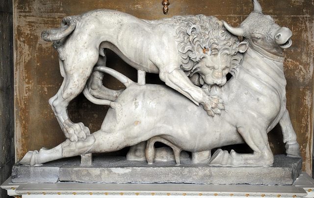 فهجم الأسد على الثور الأبيض ليفترسه، فصرخ الثور وطلب النّجدة والمساعدة من صديقيه الثورين الآخرين، ولكنهما لم يلتفتا إليه ولم يُنجداه وأكله الأسد. ومرّت الأيام، وجاع الأسد فقرر أن يفترس ثوراً آخر، فاقترب من الثور الأحمر وانفرد به