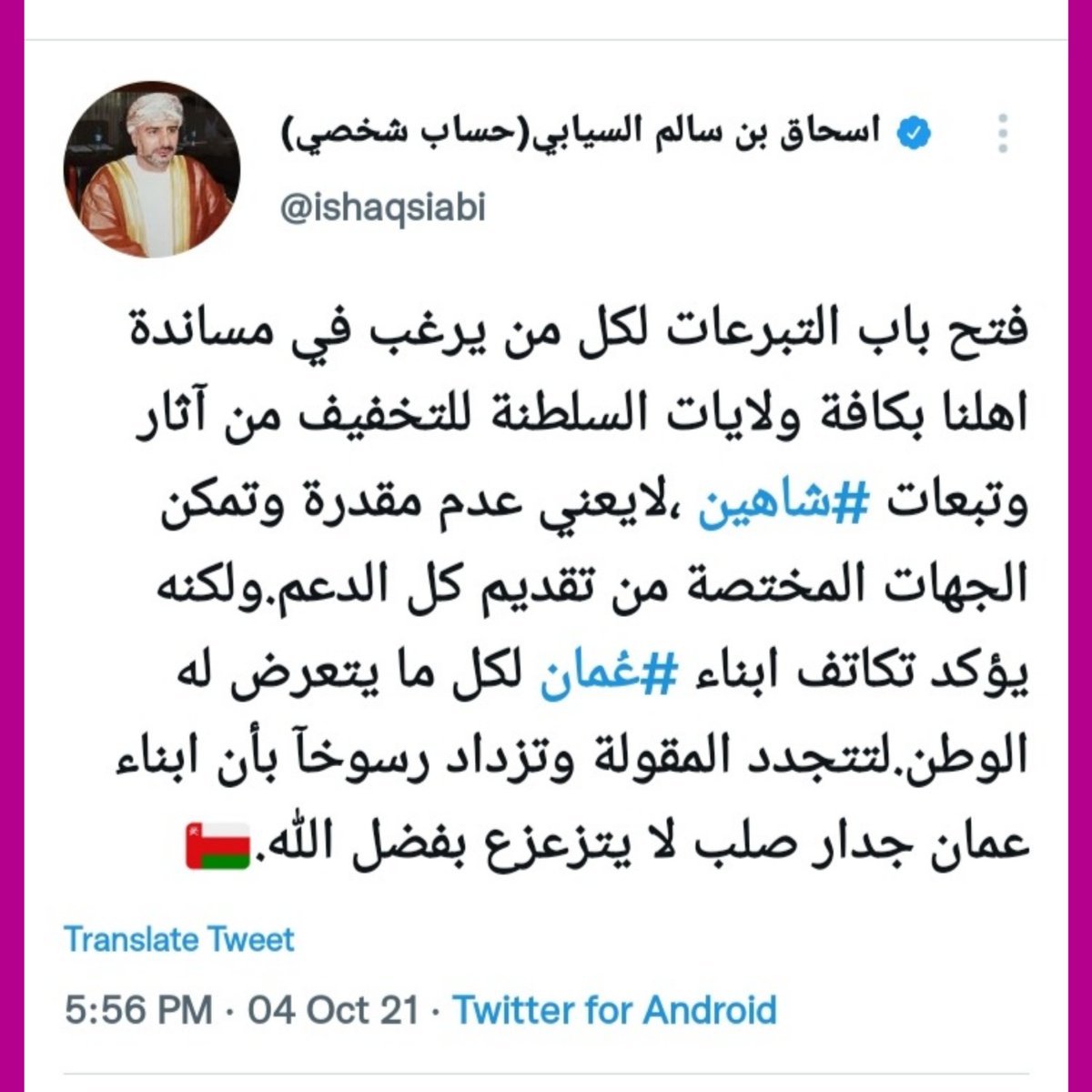 ،يقترحون إستقطاع مبلغ وقدرة 10 ريالات عمانية من راتب شهر اكتوبر.من كافة العاملين بالقطاعات الحكومية والقطاع الخاص وكافة المتقاعدين.لصندوق تبرعات يؤسس لدعم كافة ابناء الولايات الأكثر تضررآ.