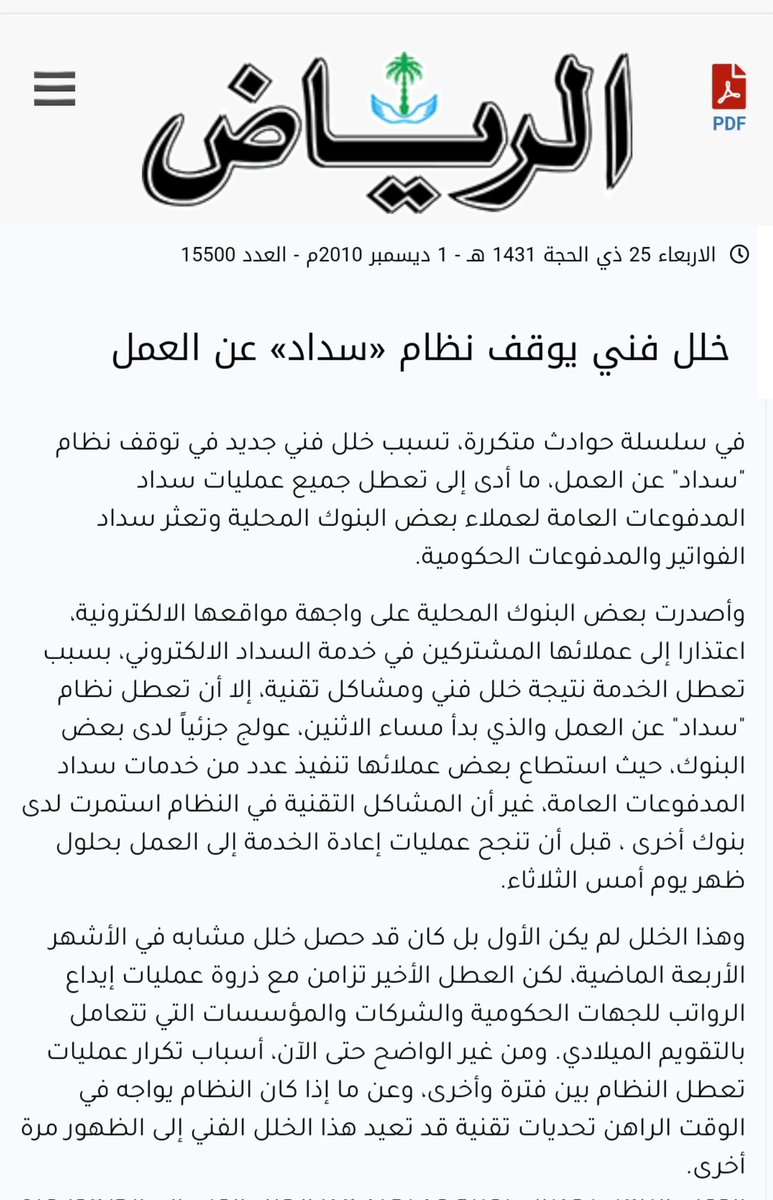 و #السعودية ليست استثناء، فقد تعطل نظام #سداد للمدفوعات من البنك المركزي والذي يسهل ويسرع عملية دفع الفواتير و #المدفوعات الأخرى عبر جميع القنوات المصرفية.