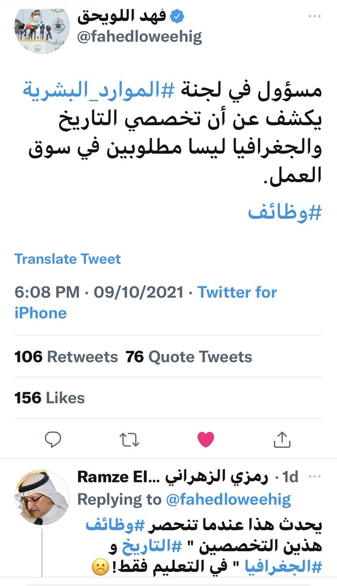 @Alotaibi_Nawaf3 @uqu_edu ختاماً، كل هذا البوح والحفر في قاع الذاكرة القريب هو على هامش ما نرى ونسمع من تصريحات حول مستقبل توظيف خريجي قسمي #الجغرافيا و #التاريخ. نسأل الله التوفيق وصلاح شأننا ومسيرتنا المباركة التي بها نعتز ونفخر. ولكل عقدة حلاّل إن شاء الله.
