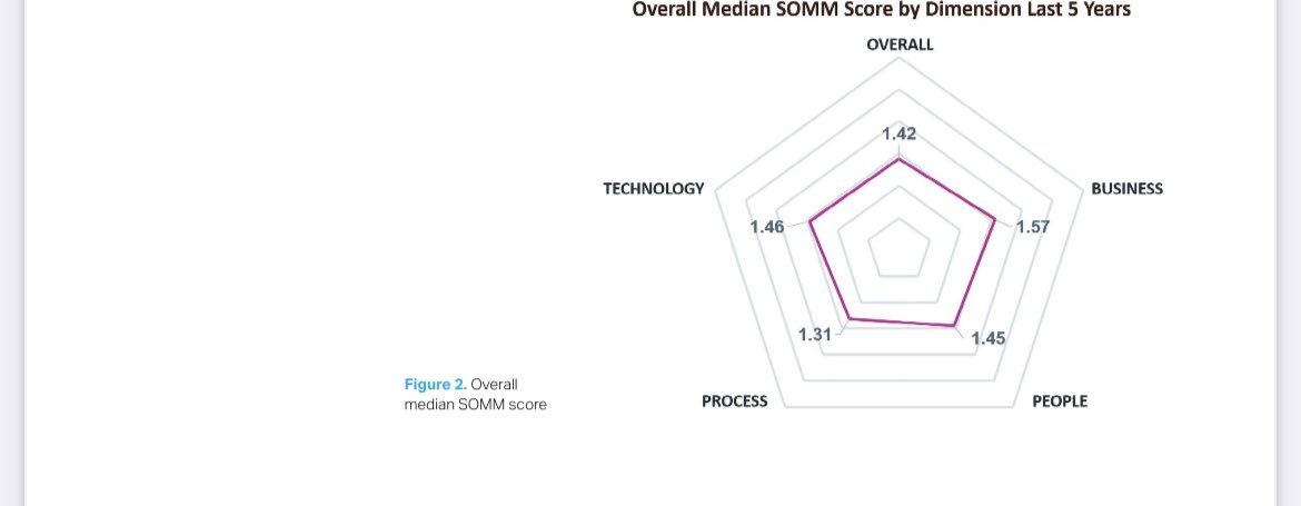 وللمعلومية ان هذه الدراسة تم اجراءها كذلك على بعض الجهات التي تعمل معها الشركة في منطقة الشرق الأوسط ومنها السعودية وان معدل مستوى النضج لدينا في ذلك الوقت كان (١.٠٩) ويعتبر اقل من المتوسط ولا بأس به.
