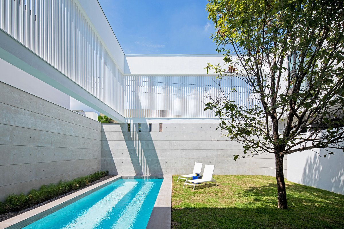 لاحظ كيف أعطت التيوبات من الواجهة خصوصية واحساساً بالحميمية للفناء الخارجي والمسبح ,,,