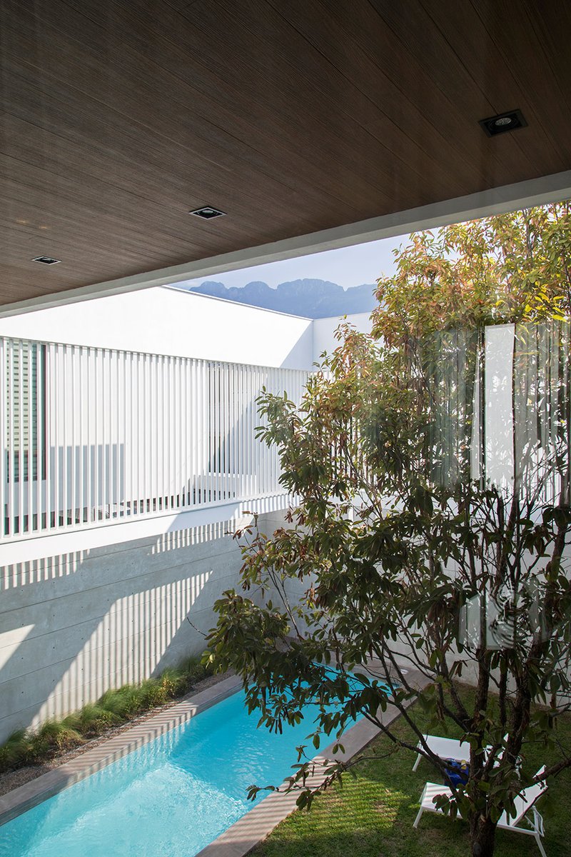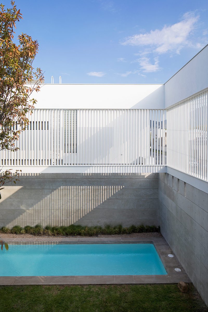 تراها صممت من تيوبات حديدية لتسمح بمرور تيار الهواء وتعطي الخصوصية للفناء دون كسر للإمتداد البصري بحل معماري مختلف وجميل ومميز ,,,