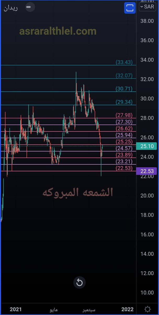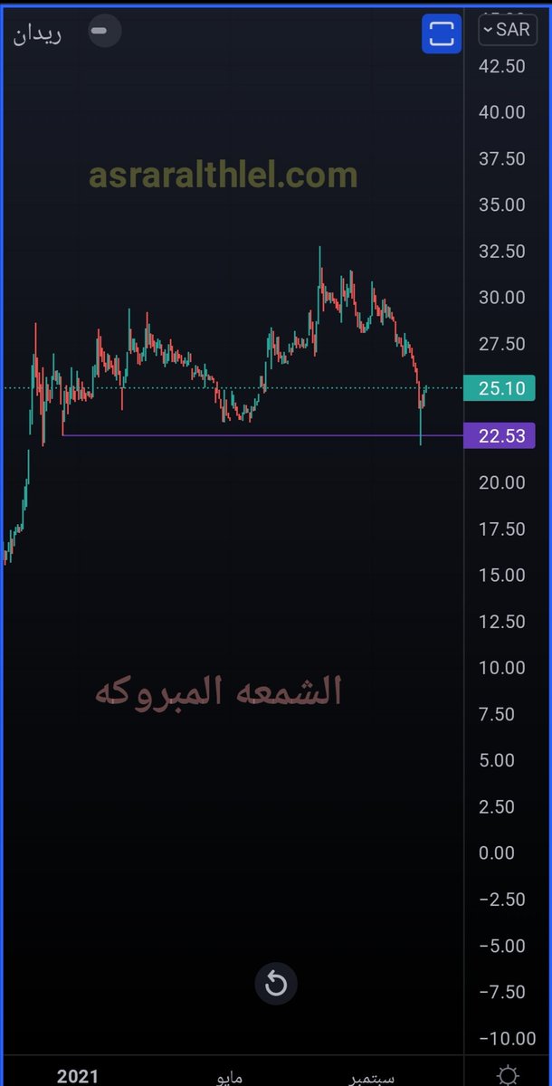 تم التطبيق على سهم ريدان وعمل مضاعفات للشمعه مع تبيين طريقة الاستفاده من التذبذب