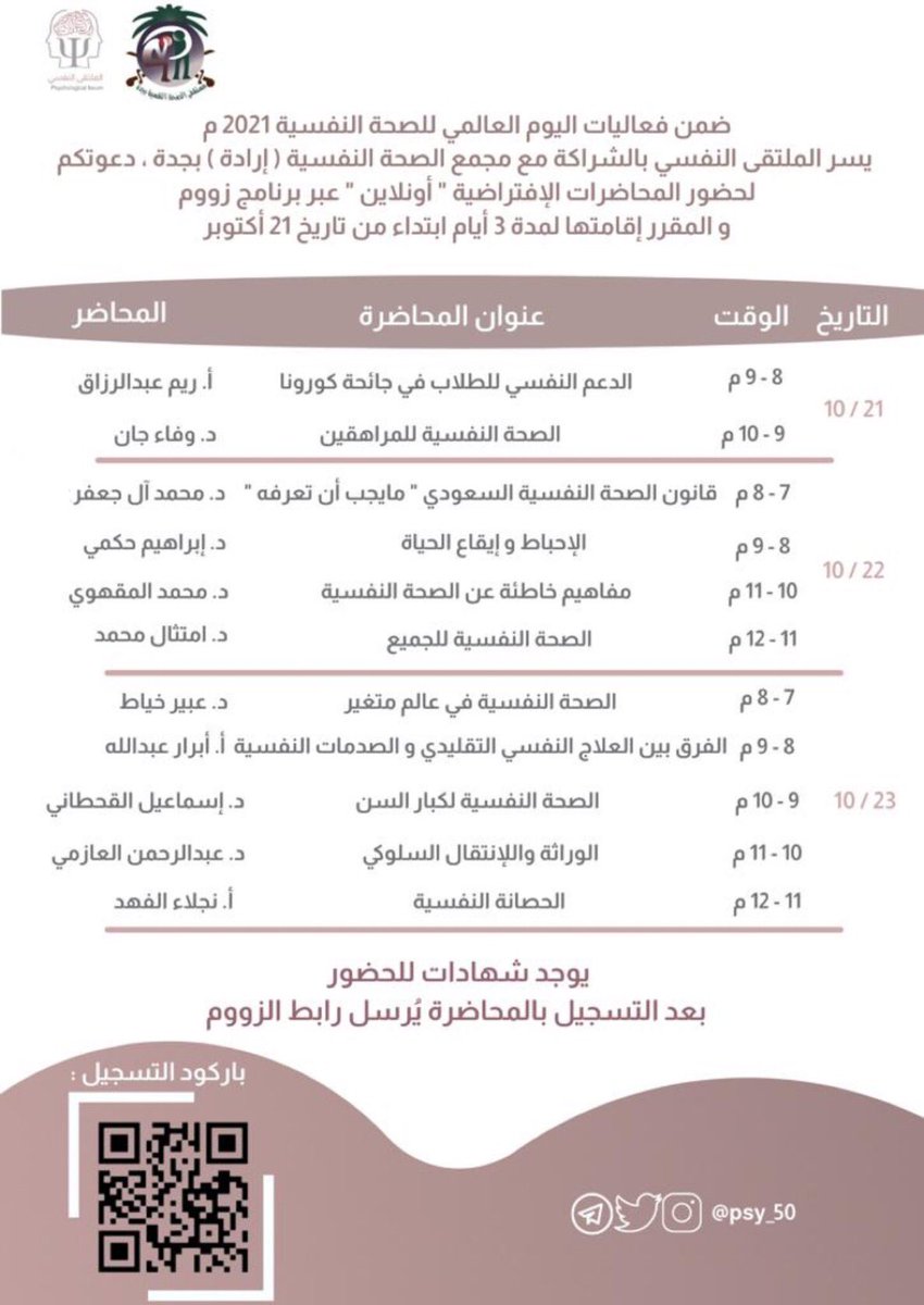 يسر #الملتقى_النفسي بالشراكة مع مجمع الصحة النفسية بجدة