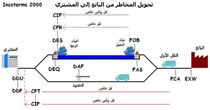 لحظة شحن البضائع من ميناء الإقلاع بالإضافة إلى كافة مصاريف الاستيراد، حيث أن سعر البضاعة لا يشمل تكلفة النقل والتأمين .