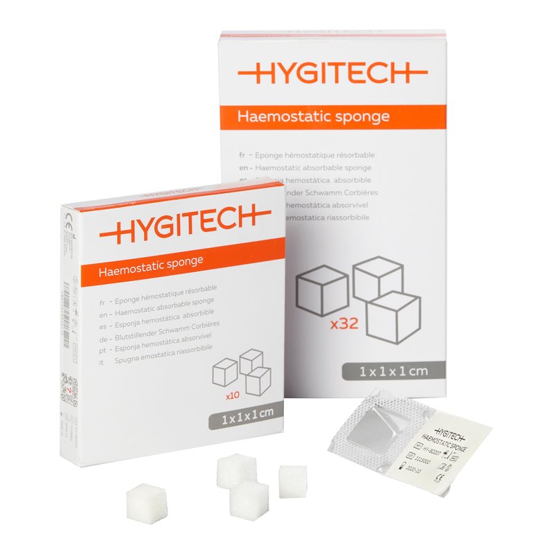 اسفنجة الكولاجين الطبيعية Natural Collagen Sponge. مادة إسفنجية بيضاء قابلة للامتصاص بالكامل ترجع قدرتها على تعزيز تراكم الصفائح الدموية. كما أنها تنشط عوامل التخثر 11 و 13. يتم استخدامها للمرضى المعرضين للنزيف بعد الإجراءات الجراحية للأسنان!