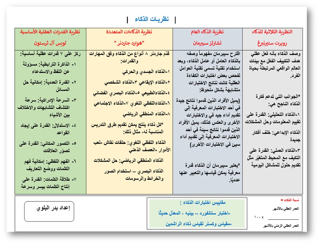عملية عقلية تقيس الاختبارات المدرسية واختبارات الذكاء :