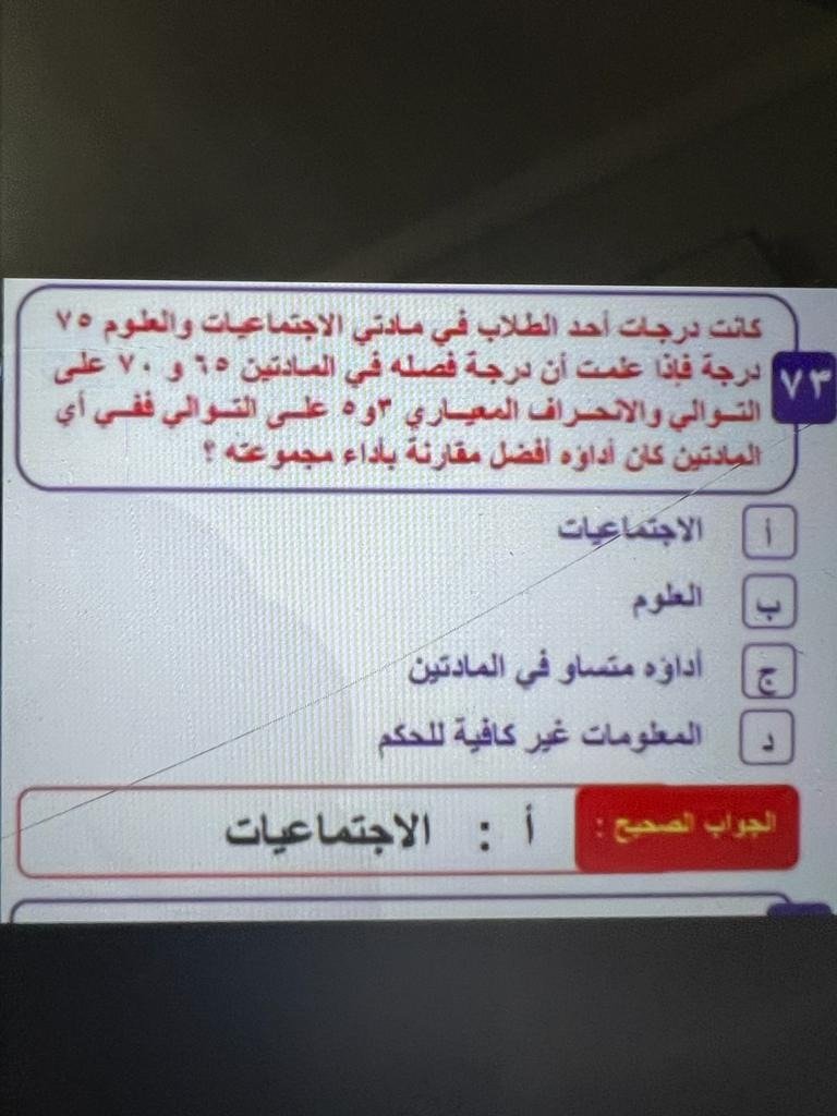 لأن صفر أو 1 أقل من 5 = درجة الانحراف المعياري لطلاب فصله في العلوم . الله يوفقكم يارب