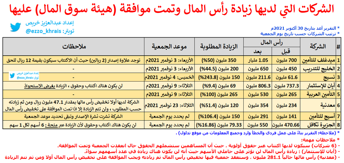 🟢 الشركات التي لديها زيادة رأس المال وتمت موافقة (هيئة سوق المال) عليها 🟢