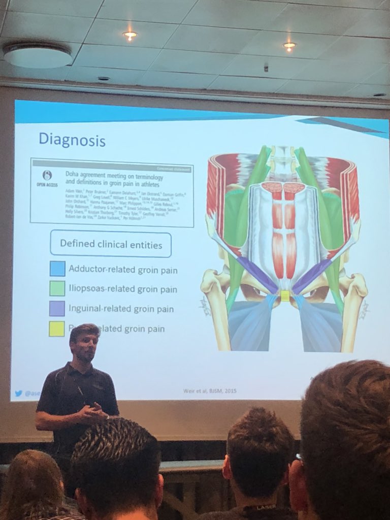 وتكلموا فيه عن الـ groin pain كونها تعتبر من أشهر الإصابات الرياضية خاصة في كرة القدم واللي تسمى بالعامية " العضلة الضامة "