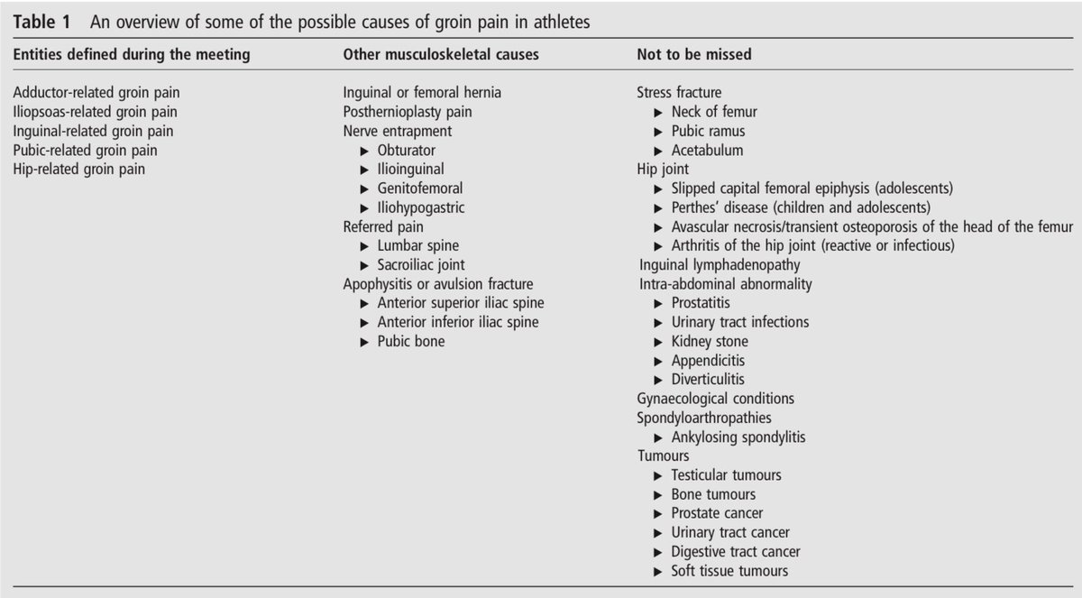 المهم العلماء في المؤتمر قسموا الـ groin pain إلى 4 أقسام رئيسية وهي: