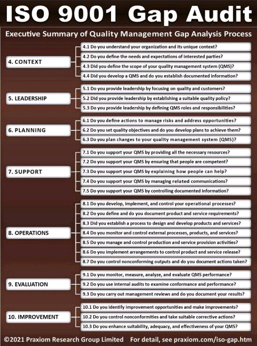 1-9 الرصد والقياس والتحليل والتقييم ( يجب على المنظمة تقييم أداء وفاعلية نظام إدارة الجودة من خلال تحديد احتياجاتها من الرصد والقياس وماهي طرق الرصد والقياس والتحليل والتقييم ومتى تتم ؟ ) ، وأن ترصد انطباعات ورضا العملاء وماهي درجة التوافق مع احتياجاتهم وتطلعاتهم ..