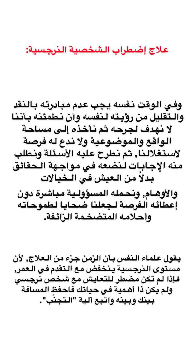 ثريد مهم: عن "الشخصية النرجسية" ومعرفة الشخصية وطرق التعامل والعلاج.