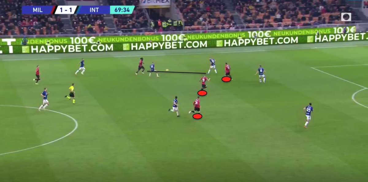 On the contrary of Inter, milan has not a predefined off ball structure. It means you have to adapt to players’ moves. And Krunic let too much distance many times with Brozovic, who could drop off easily.