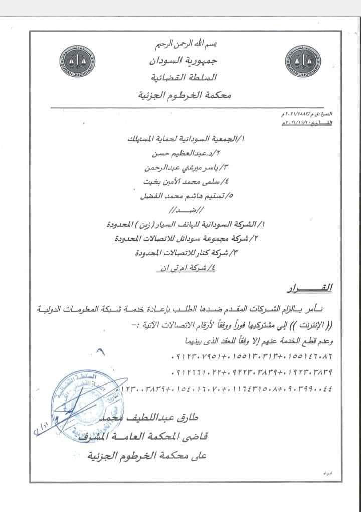 ثالثاً : تنفيذ الحكم فور صدوره وإعادة الخدمة للأرقام المعنية يشير بجلاء لضعف وهشاشة السند السلطوي لهذه الشركات ورضوخها لحكم القانون جبراً وليس تفضلاً.⏬