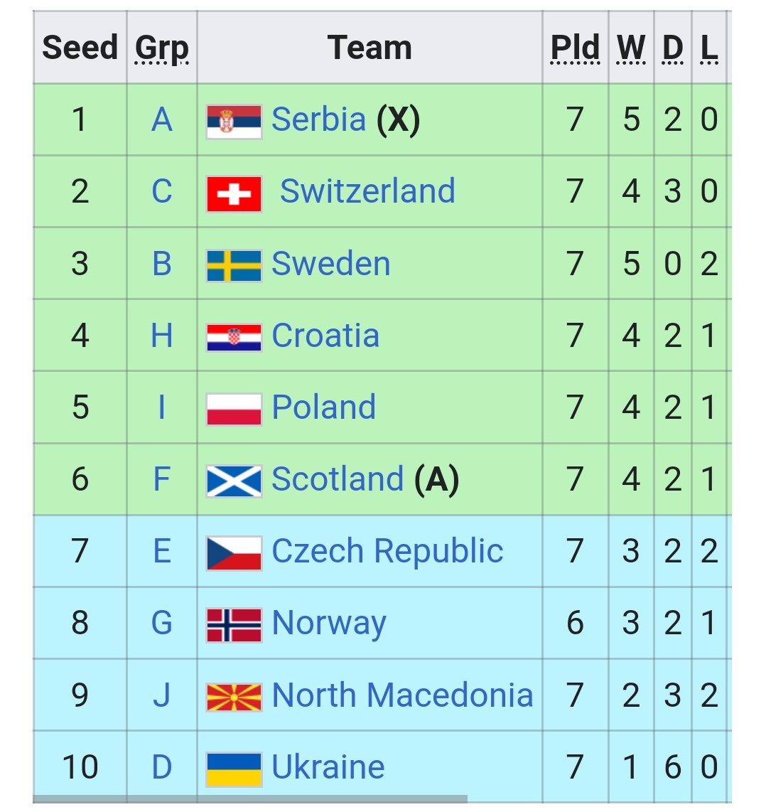 ١٣ منتخب أوروبي فقط سيتأهل لكأس العالم القادم، ١٠ هم متصدرو المجموعات و٣ عن طريق البلاي أوفس