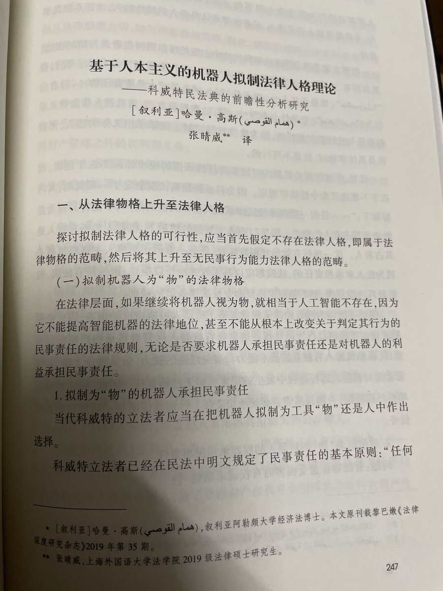 تم ترجمة نظريّتي في #الشخصية_الافتراضية_للروبوت وفق #القانون_الكويتي بالمقارنة مع #الأوروبي إلى #اللغة_الصينية من باحثة في #معهد_الحقوق ل #جامعة_الدراسات_الدولية #شانغهاي في #الصين..