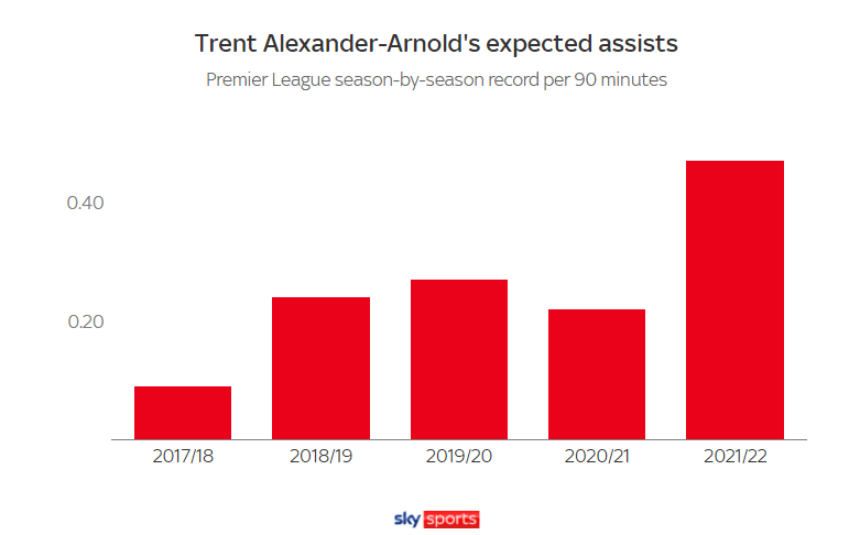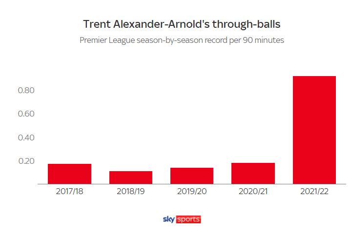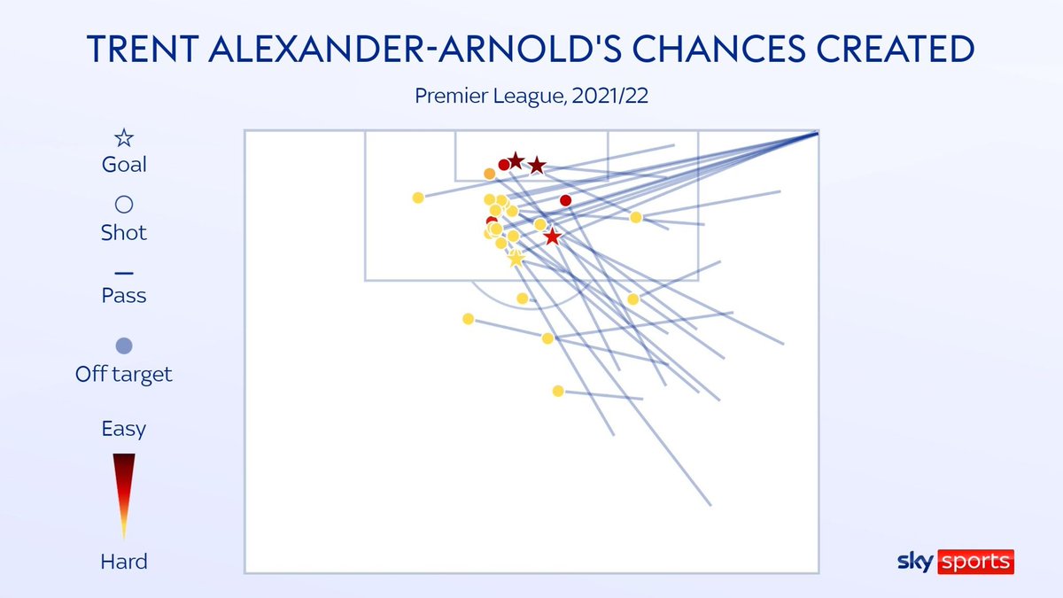 ما زال أرنولد هو المنفذ الأول لكل الكرات الثابتة وهو أكثر لاعب في الدوري صنع فرص من كرات ثابتة ولكن أيضاً معدل الفرص التي يصنعها من اللعب المفتوح زاد أيضاً هذا الموسم