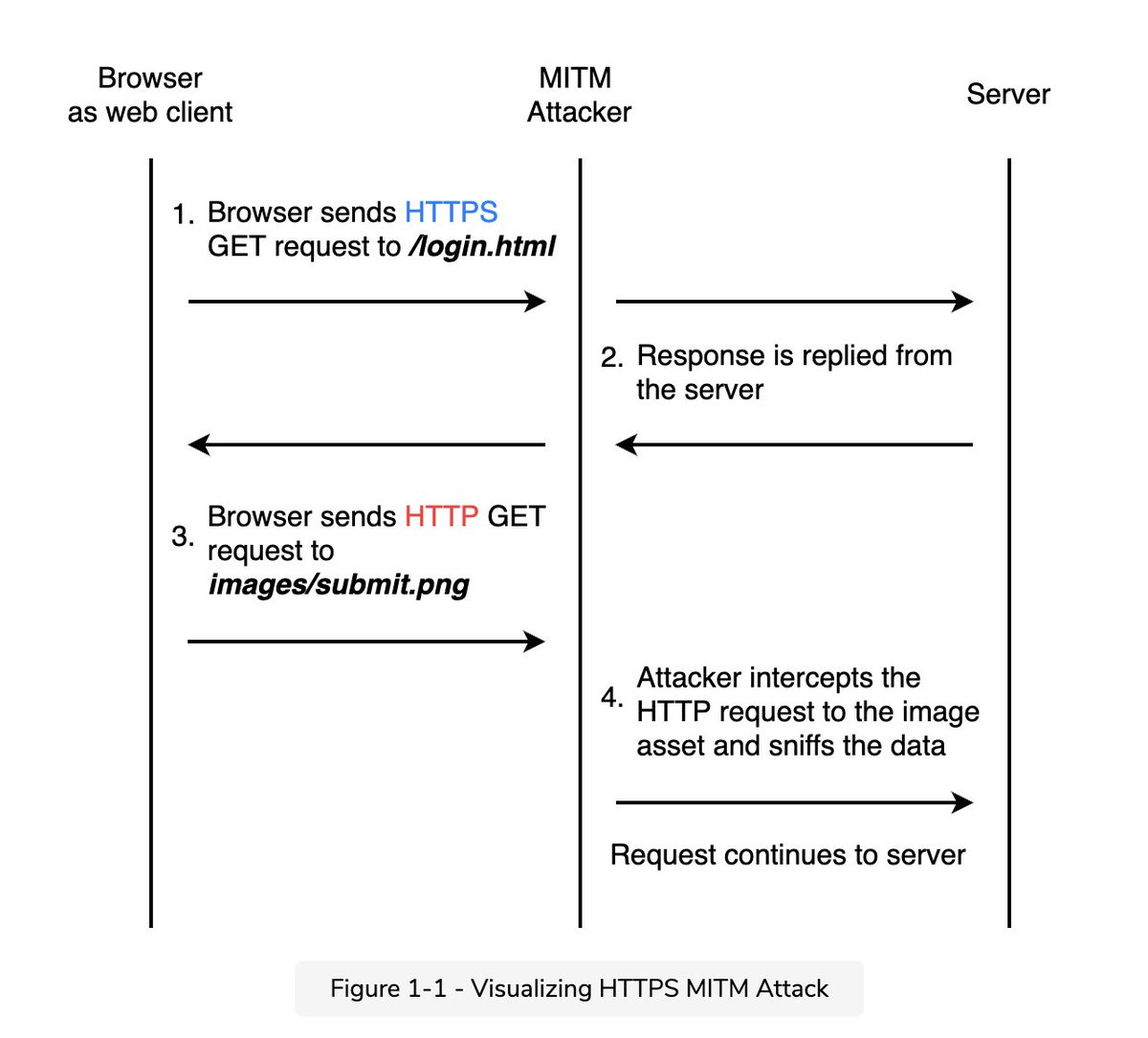 قبل كده كان الbrowser بيبعت request للويبسايت (أو الserver بمعنى أدق) و الويبسايت بيرد عليه بالcontent اللي هو طالبه .. ده كان بيسيب مجال لنوع من الإختراق اسمه Man in the middle attack