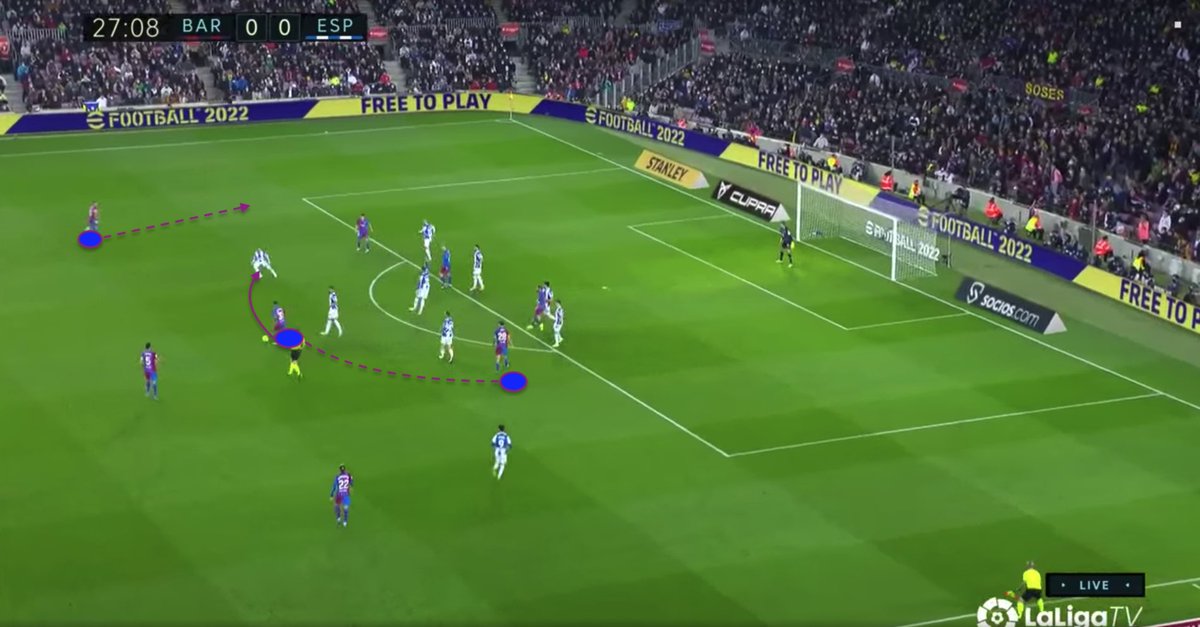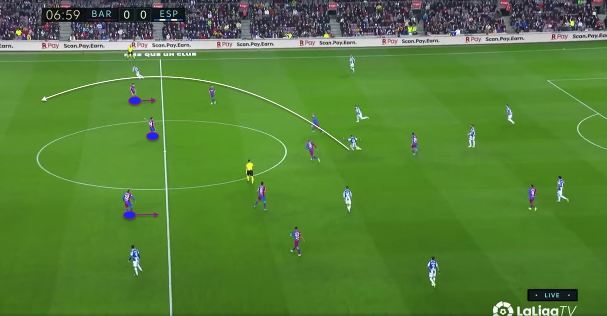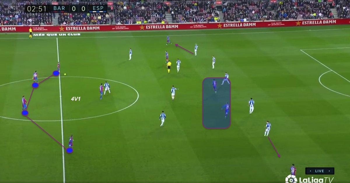 Barca frequently ended up in numerical superiority to catalyze build up.