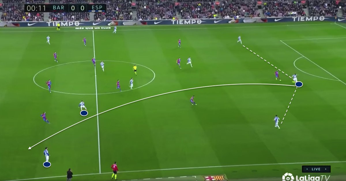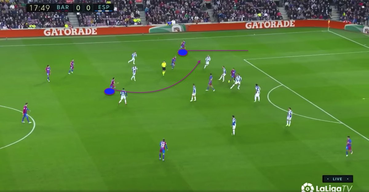 With wingers looking for width, Espanyol FBs have to stretch lines and are forced to open space opportunities.