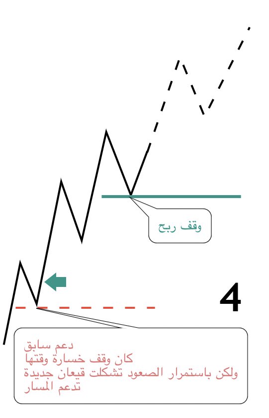 في حال صعود السهم 🔼 ينتقل وقف الخسارة "الآلي أو اليدوي" من ذلك المستوى السعري "الدعم" الى مستوى سعري أعلى منه "دعم أعلى"