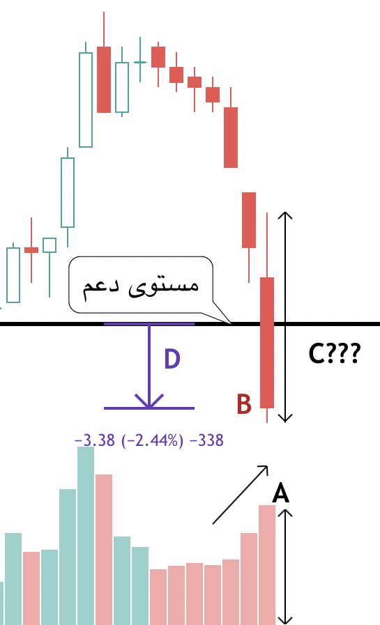 يُسمى هذا المستوى "دعم" و يجب ألا يهبط السعر دونه - أي لا يكسره
