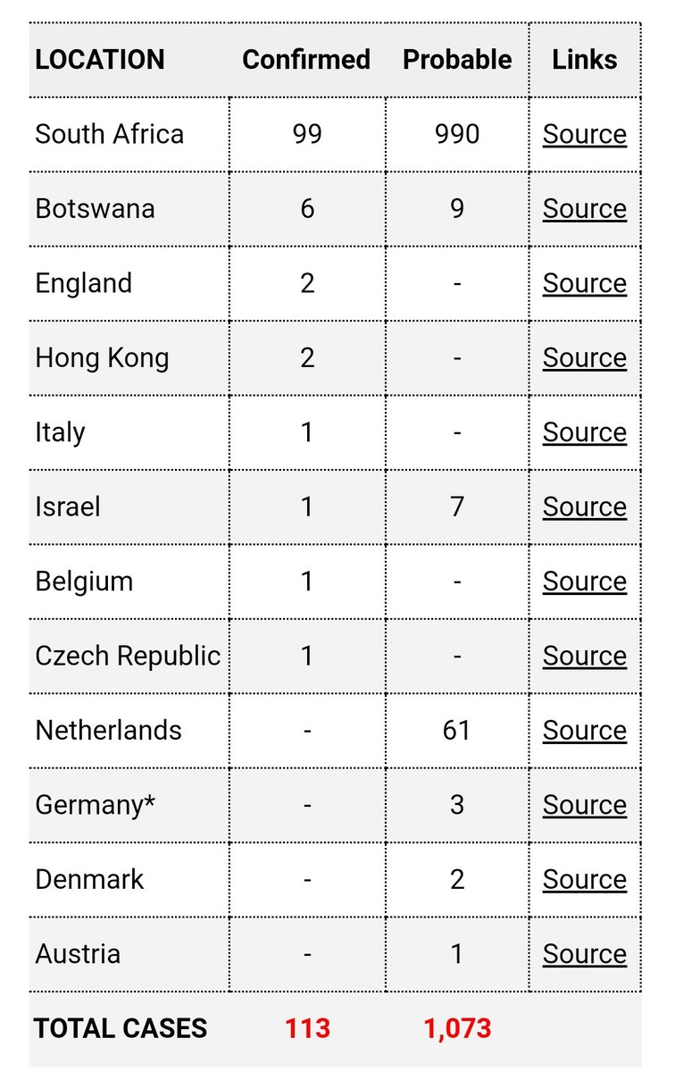 ارتفاع حالات الإصابة في جنوب افريقيا إلى ١١٠ حالة لتصل إلى ١٦١ حالة من #أوميكرون المتحور الجديد حول العالم