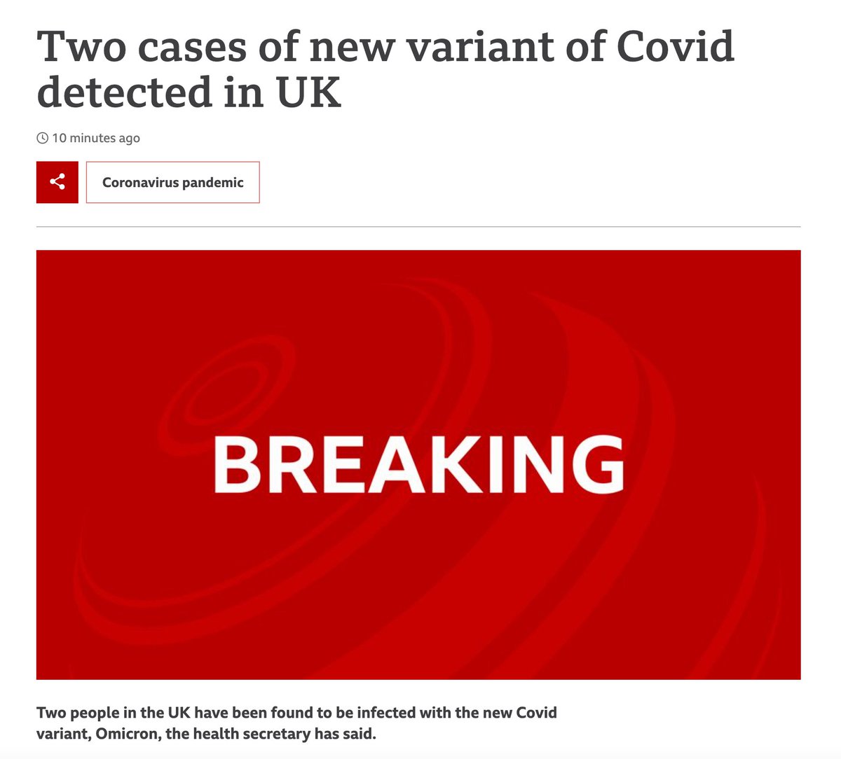 أكد وزير الصحة البريطاني أنه تم الكشف عن حالتين إصابة بالمتحور الجديد "أوميكرون" في بريطانيا.