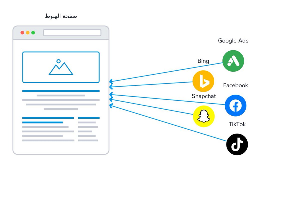 ▪️ زي ما نلاحظ في الصورة منصات اعلانية مختلفة لكن صفحة الهبوط (وحدة)