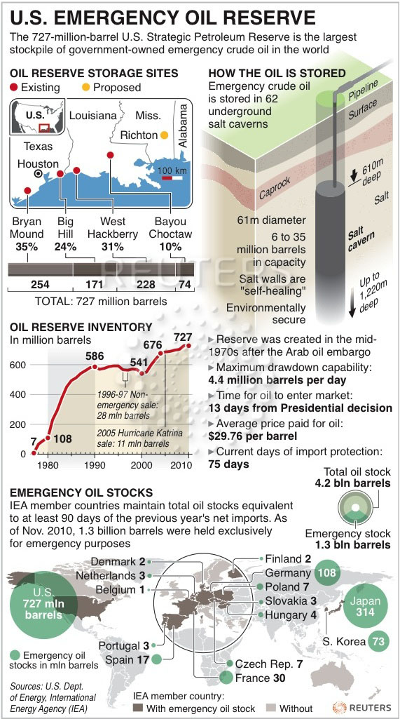 المجموع هناك ما يقارب 62 حفرة اسطوانية يتم حقنها بالنفط الخام بحسب الحاجة الى نوعيات مختلفة من الخامات و تحسبا لما تحتاجه الولايات المتحدة الأمريكية و مصافي التكرير فيها