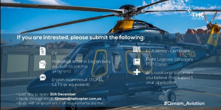 كما اطلقت شركة الطائرات المروحية #السعودية برنامج ( قمم للطيران ) وهو برنامج تدريبي دولي لفنيي صيانة المروحيات والطيارين من السعوديين