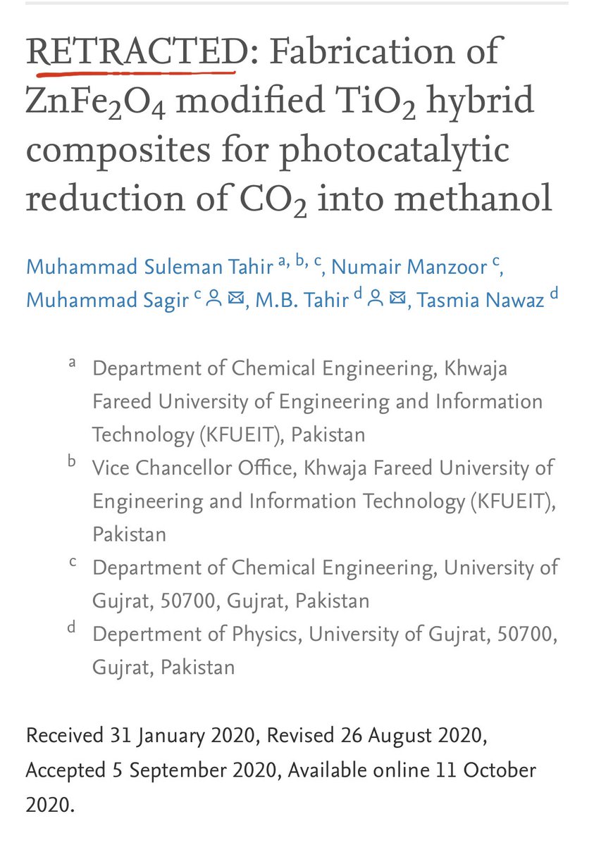 تقول @RetractionWatch إن هذه القصة مثيرة للاهتمام لأن المؤلف الرئيس في الورقة المسروقة هو نائب رئيس جامعة حكومية في باكستان، والمؤلفون المقابلون هم رؤساء أقسامهم في الجامعة.
