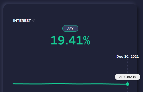 Currently, Anchor Earn's yield consistently hovers around 19.41% APY.